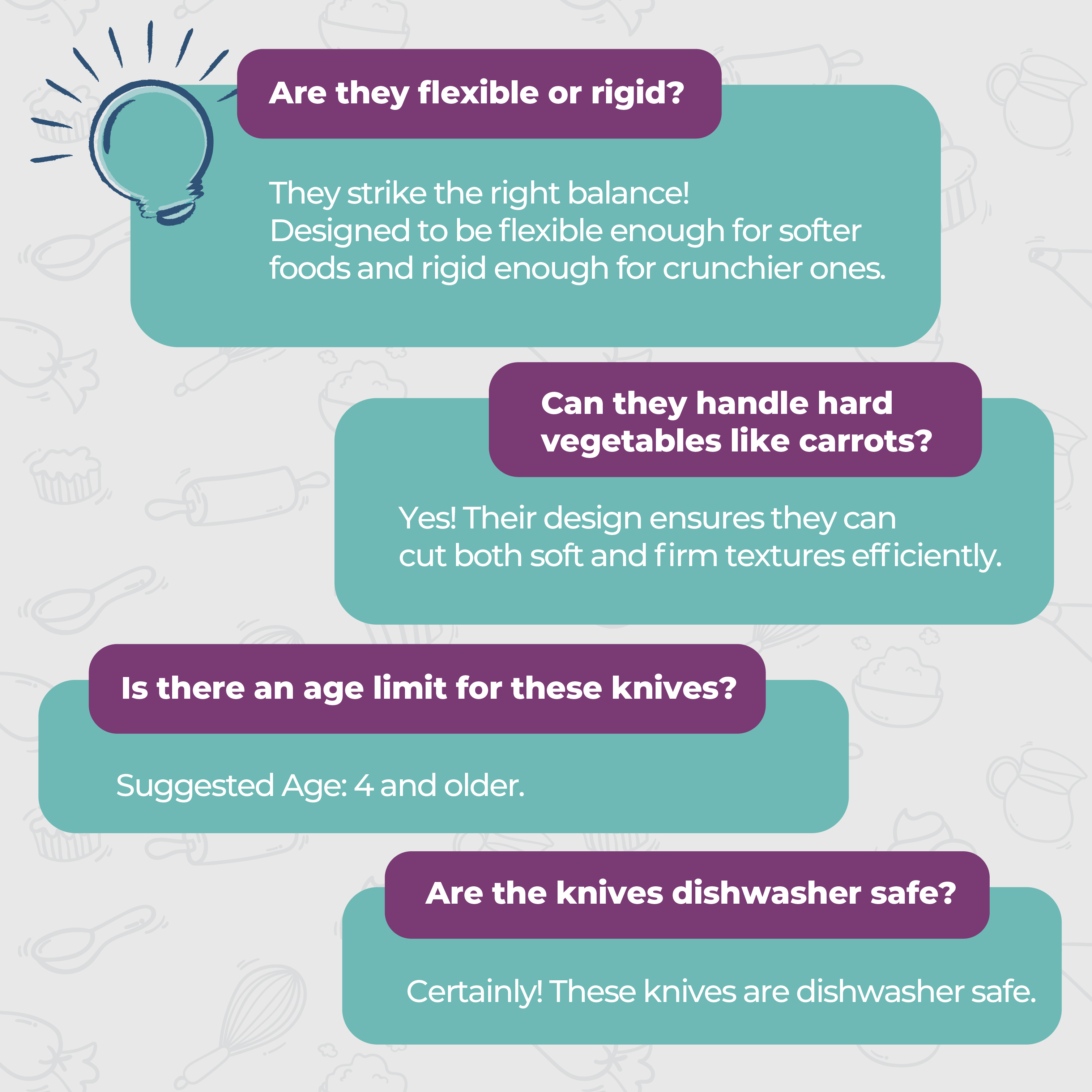 Helping to prepare the food creates a sense of pride in young chefs. Our toddler knives are specially designed for children and can help get kids involved in the kitchen early, turning them into confident chefs.