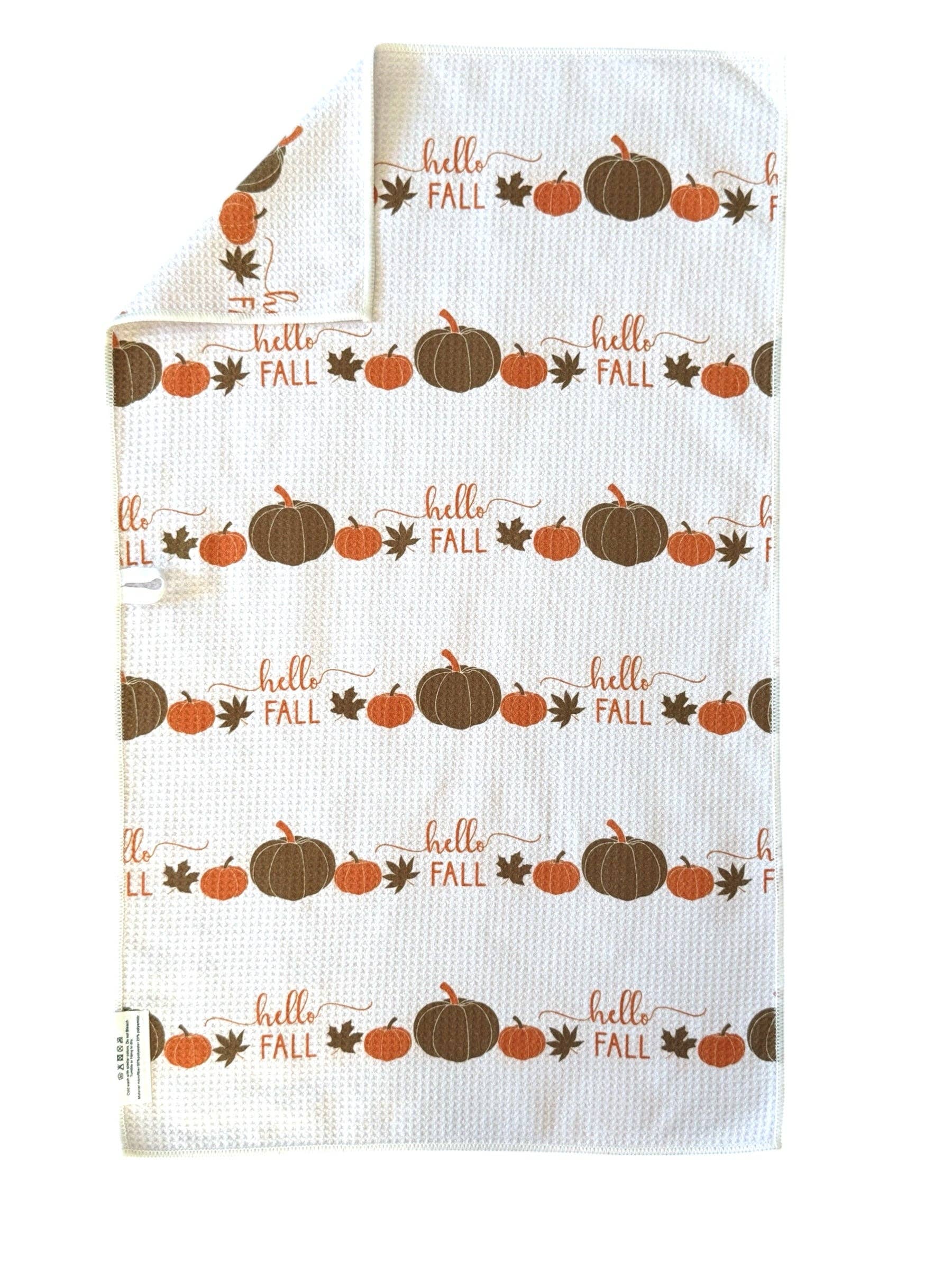 Have a little frill to wipe up a spill. With an easy touch of magic to functionally add a little holiday cheer to your home. A high-absorbent waffle weave microfiber Hand Towel Double-Sided (The same pattern on each side) 17 inches x 27 inches Only wash with microfiber products. Machine wash and dry with low heat. Environmentally friendly